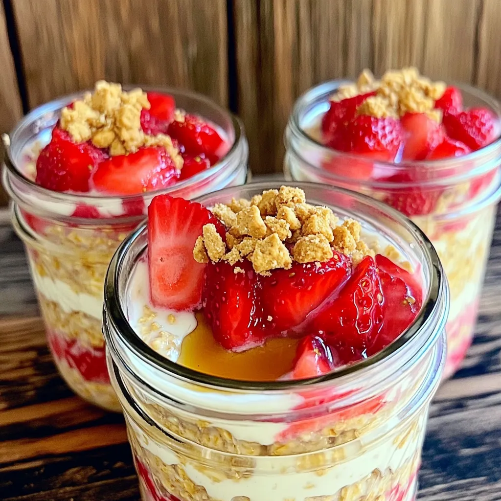 Um die Erdbeer-Käsekuchen Overnight Oats frisch zu halten, wähle luftdichte Behälter. Glasbehälter sind ideal, da sie keine Chemikalien abgeben. Du kannst die Oats direkt nach der Zubereitung aufteilen. Achte darauf, die Oats gut abzudecken. So bleibt die Feuchtigkeit erhalten und die Oats ziehen schön durch.
