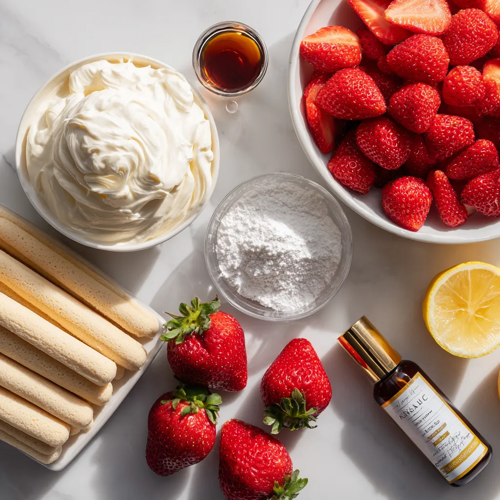 Falls du keine Löffelbiskuits hast, kannst du auch Biskuitteig verwenden. Für eine leichtere Version kannst du griechischen Joghurt anstelle von Mascarpone verwenden. Wenn du eine vegane Variante machen möchtest, probiere Kokoscreme statt Schlagsahne. Auch die Erdbeeren kannst du durch andere Beeren wie Himbeeren oder Blaubeeren ersetzen.