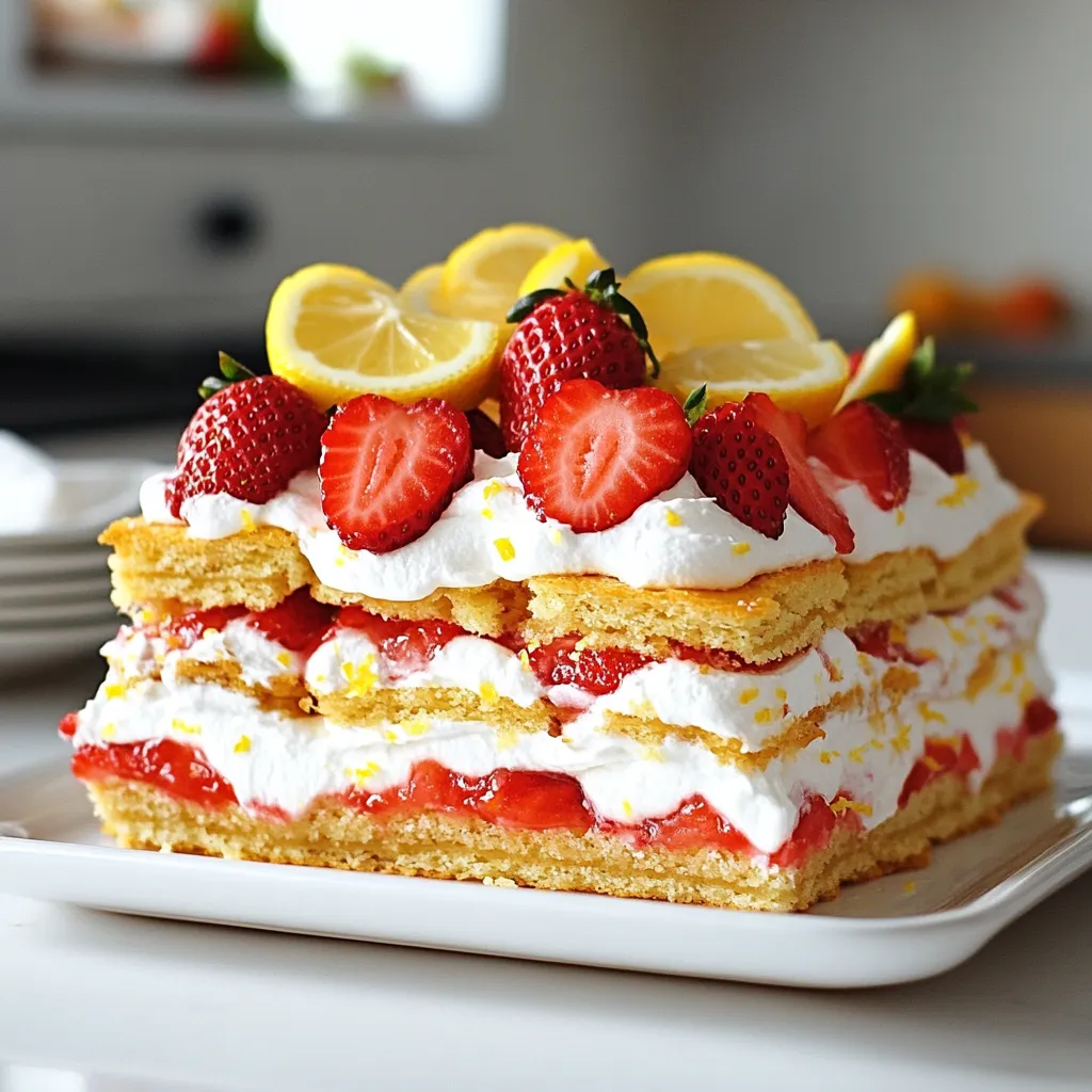 Um den Kuchen frisch zu halten, füge neue Erdbeeren hinzu. Ein bisschen Schlagsahne oben macht ihn toll. Du kannst auch etwas Zitronenschale für einen extra Kick verwenden. So wird der Geschmack lebendiger und frisch.
