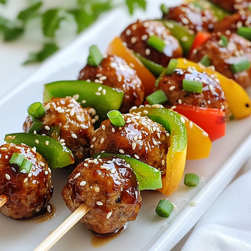 Teriyaki Chicken Meatball Skewers Köstlicher Genuss