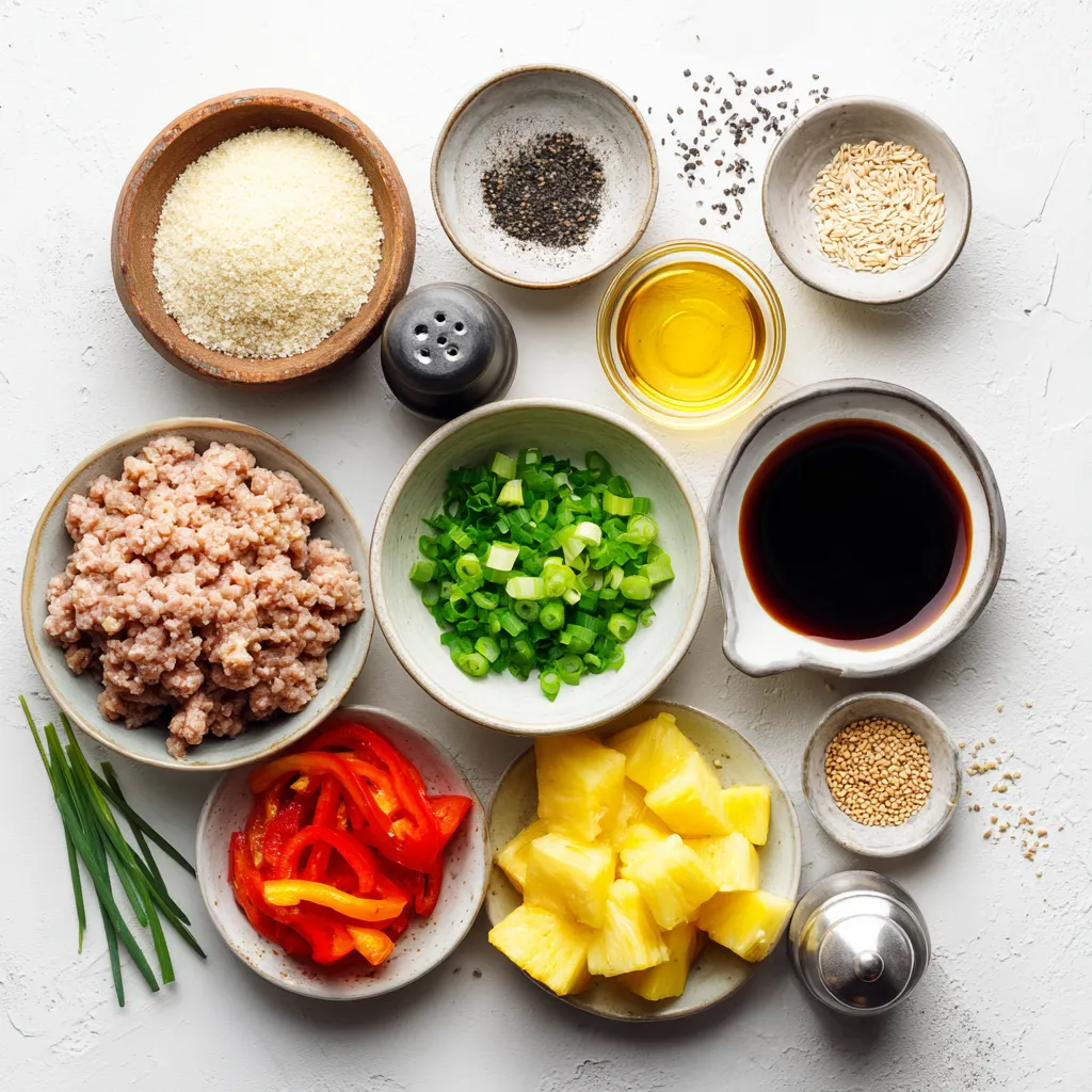 Diese Zutaten machen die Frikadellen lecker und saftig. Das gemahlene Hähnchen ist die Basis. Die Panko-Brösel geben eine schöne Textur. Grüne Zwiebeln und Knoblauch bringen Geschmack.