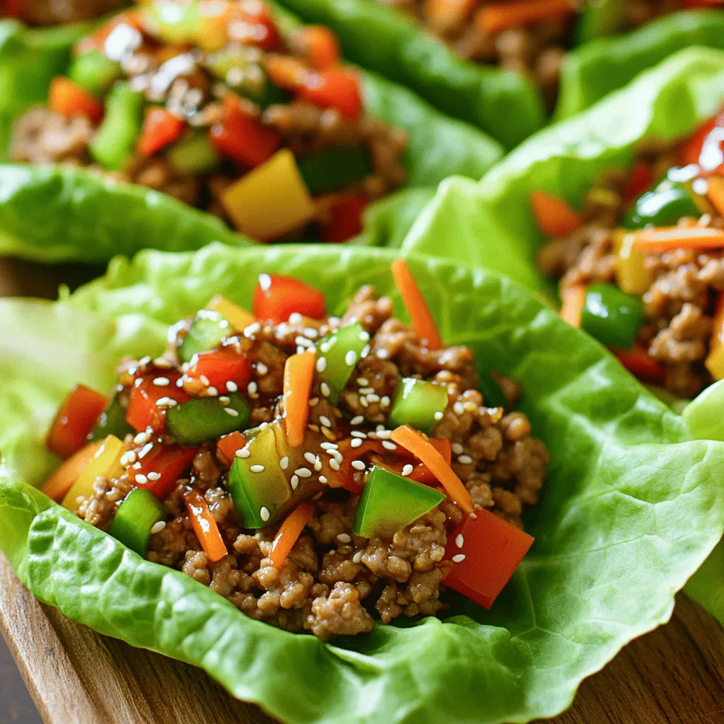 Servieren Sie die Mischung in frischen Salatblättern. Butter- oder Eisbergsalat eignet sich perfekt, um die Füllung zu umhüllen. Streuen Sie einige Sesamkörner oben drauf, um einen zusätzlichen Crunch zu bekommen.