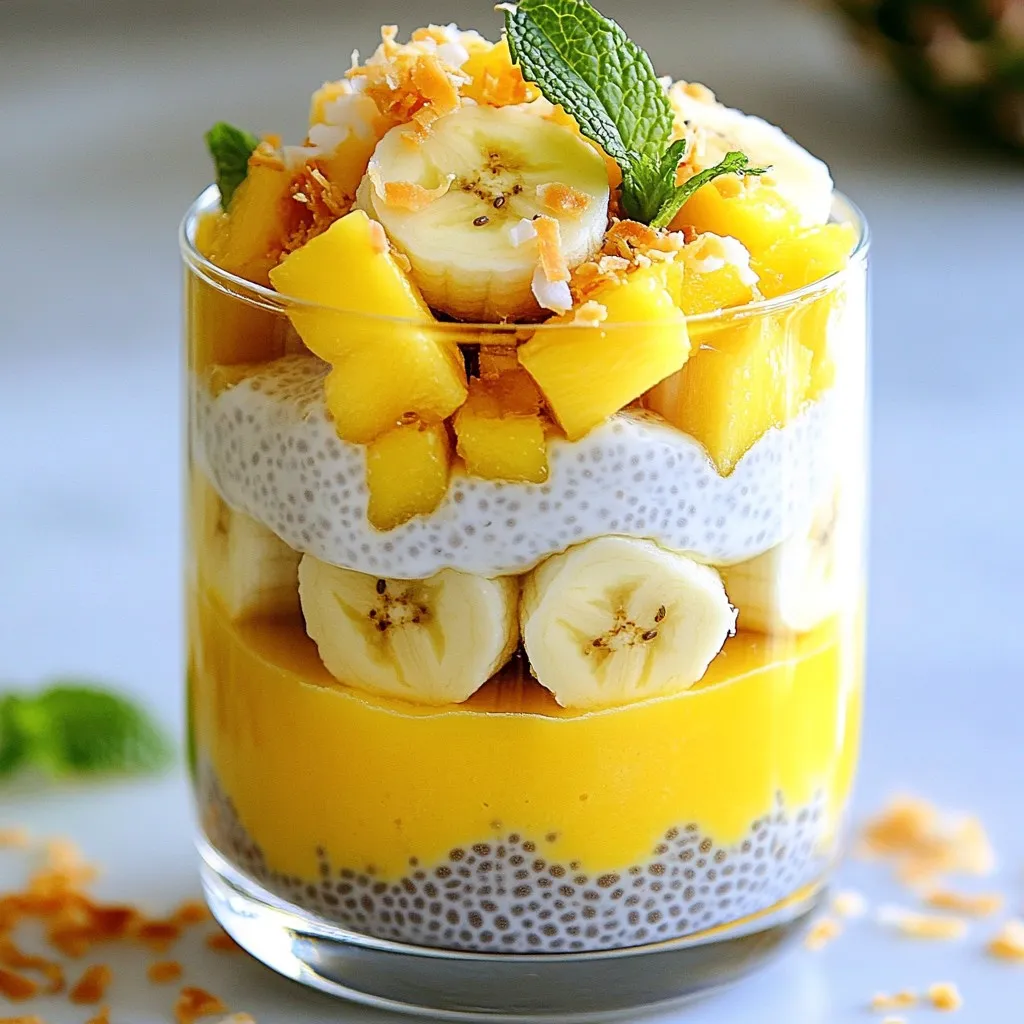Die Früchte machen das Parfait bunt und lecker. Bananen sind süß und weich. Ananas bringt eine tropische Note. Mangos sind saftig und frisch. Du kannst auch andere Früchte ausprobieren, je nach Saison und Vorliebe.