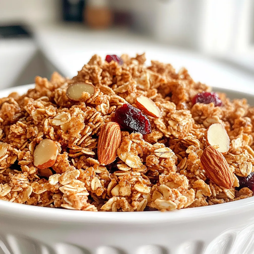 Ein köstliches und gesundes Granola mit Vanille und Mandeln, perfekt für Frühstück oder Snacks.