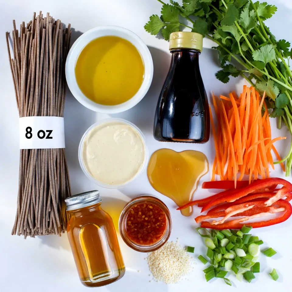 - 230 g Nudeln (bevorzugt Soba oder Vollkornspaghetti)
